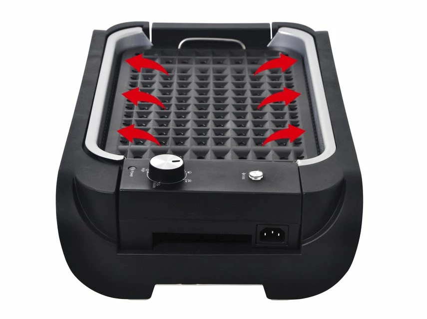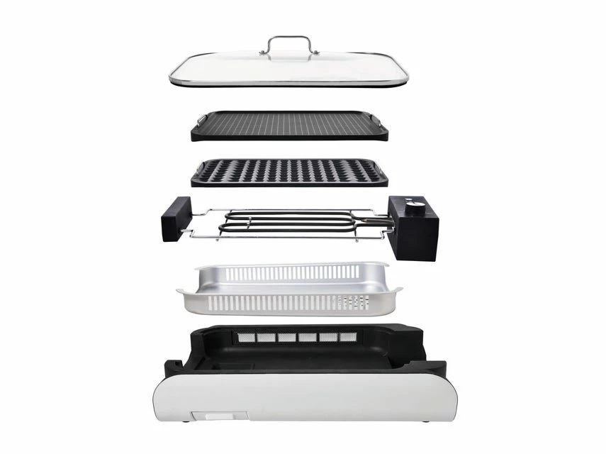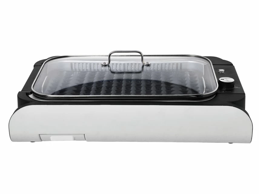 Flächengrill mit Abluft-Funktion für Grillspaß das ganze Jahr. Integrierter zuschaltbarer Dunstabzug ermöglicht rauchfreies Indoor-Grillen. Sicherheitsglasdeckel gewährt zusätzlichen Spritzschutz und noch kürzere Grillzeit.