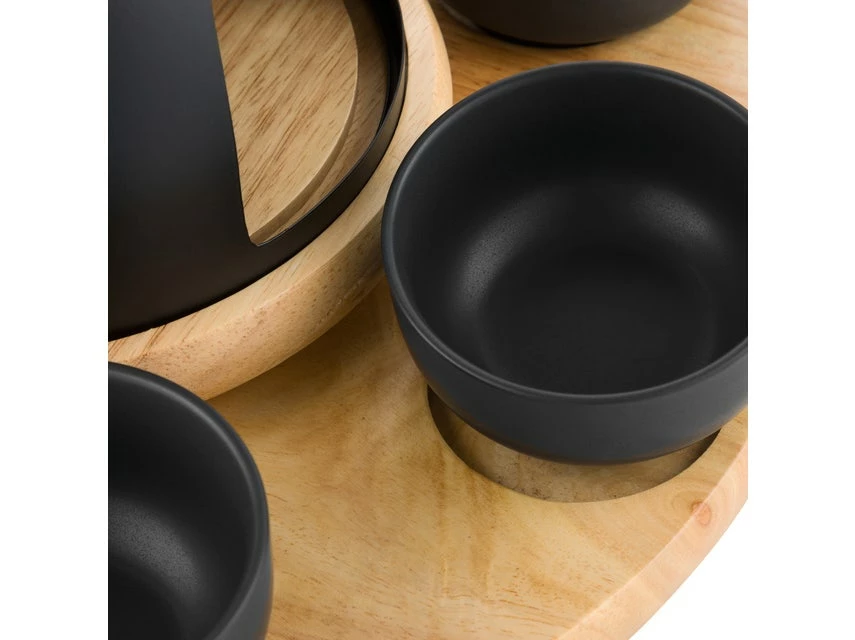Dieses edle Fondue ist der Hingucker schlechthin. Durch die Kombination unterschiedlicher Materialien wie glänzendes Edelstahl, natürliches Holz und mattschwarzer Keramik bringt es Wärme und Ausgelichenheit mit sich. Geniessen Sie in geselliger Runde zu Weihnachten, zu Silvester oder zu anderen besonderen Tagen die Kunst des Fonduekochens. Es beinhaltet nicht nur Fonduegabeln, sondern auch Löffeln passend zu den schwarzen Keramikschüsselchen.