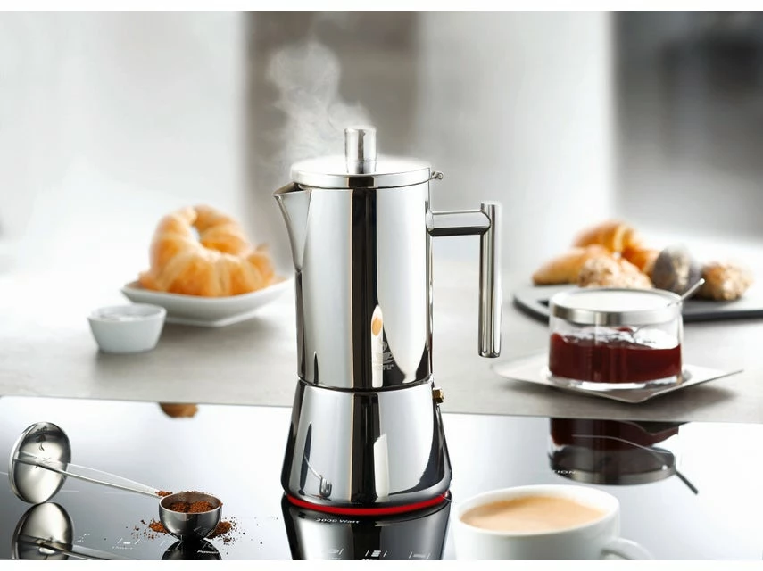 Frischer Espresso, klassisch aufgebrüht in einem exklusiven und hochwertigen Kocher. Der formschön gestaltete Espressokocher macht auf jedem Herd eine gute Figur.