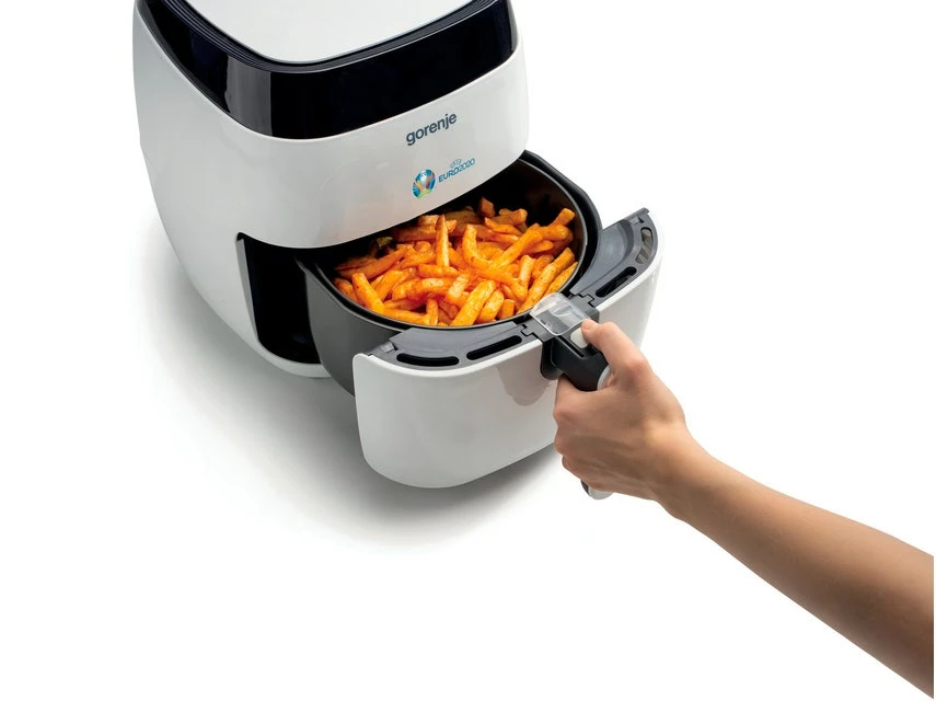 Eine spezielle Antihaft-Oberfläche an der Innenseite des Korbs sorgt dafür, dass die Lebensmittel nicht an den Seiten haften und direkt vom Korb auf den Teller serviert werden können.
