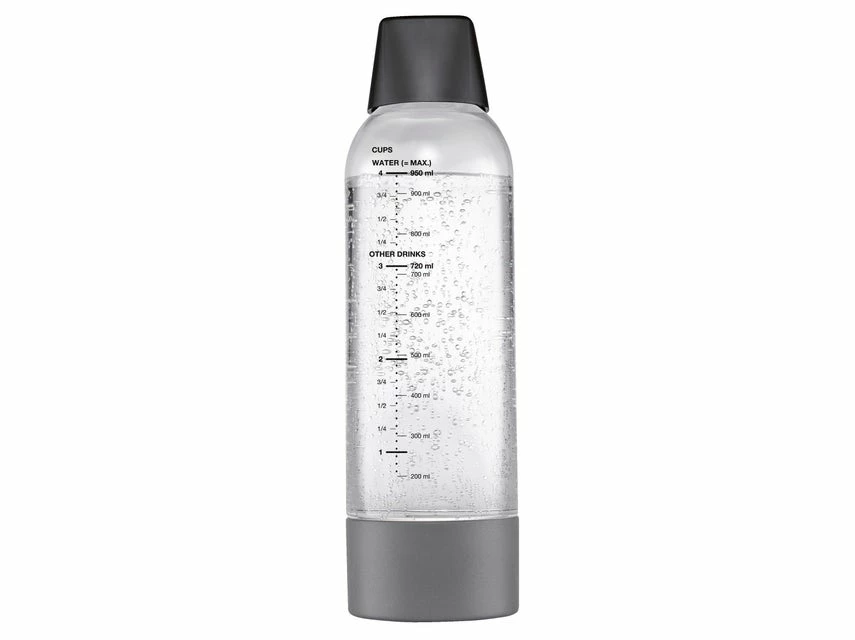 Die transparente PET-Flasche zum Wiederbefüllen ist BPA- und Phthalatfrei, hat ein maximales Füllvolumen von 0,95 Liter und ist recht robust. Die iSi Twist’n Sparkle ist handlich, platzsparend und leicht verstaubar.