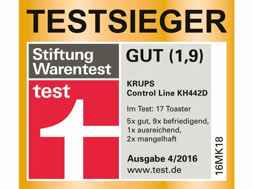 Der Premium Toaster Control Line „KH442D“ von KRUPS ist mit 720 Watt Leistung ausgestattet und zeigt sich als 2 Scheiben Design Toaster in gebürsteter Edelstahl Optik.