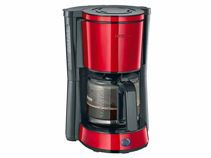 Perfekter Kaffeegenuss am Morgen mit dieser klassischen, 1.000 Watt starken Filterkaffeemaschine in intensivem Rot. Der Wassertank ermöglicht sie Zubereitung von ca. 10 Tassen Kaffee und die integrierte Warmhalteplatte sorgt für verlängerten, heißen Kaffeegenuss.