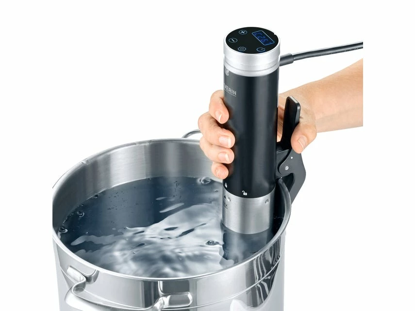 Einfache Bedienung: Leichtes Einstellen der Temperatur und Zeit durch LED-Display, Befestigen des Sous-Vide-Sticks an dem Kochtopf oder Bräter mit seitlicher Klemme