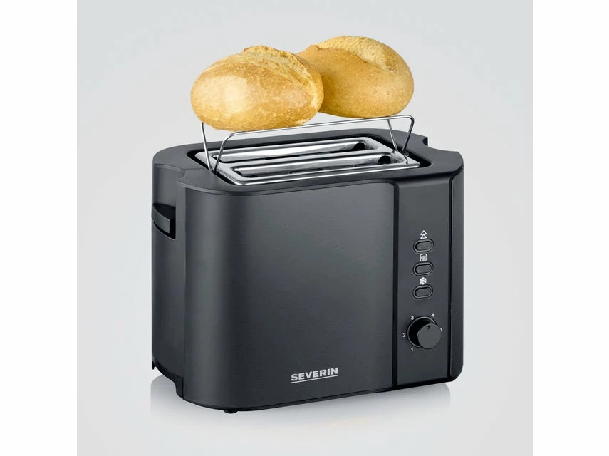 Der SEVERIN ist so, wie man sich einen 2-Scheiben-Toaster nur wünschen kann. Die Ausstattung des Toasters hält mit Brotscheibenzentrierung, Brötchenaufsatz, Krümelschublade, Stopptaste und für Bagel und Brötchen alles bereit, um für ein tolles Frühstück zu sorgen.