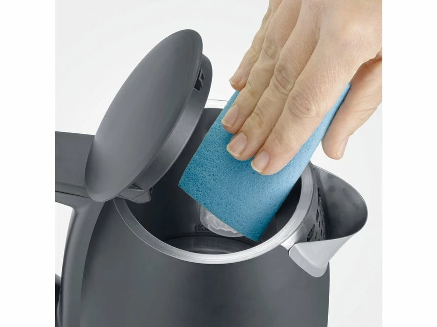 Hochwertiges, lackiertes Edelstahl-Gehäuse in moderner Farbgebung. Leichte Reinigung durch klappbaren Deckel mit großer Öffnung. Es ist einfach eine praktische und angenehme 1-Hand-Bedienung