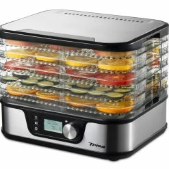 5 stapelbare Dörrgitter (ca. 30 x 23 cm) und ein Netz für Kräuter