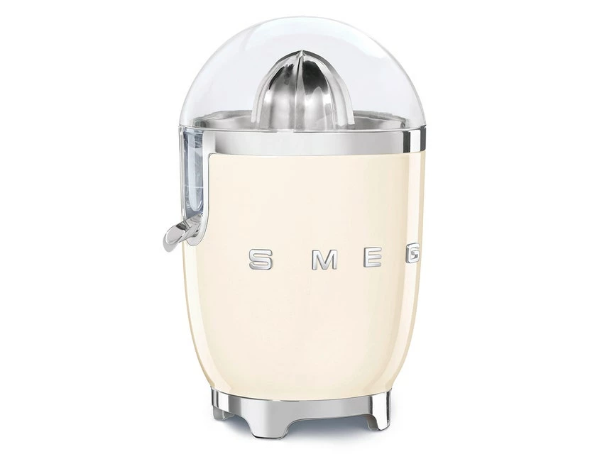 Die Zitruspresse im Stil der 50er Jahre kommt mit einem Filtersieb und einem Anti-Tropf-Auslauf aus Edelstahl.